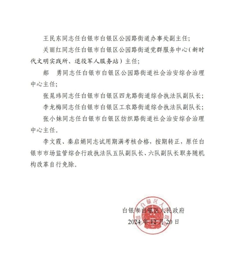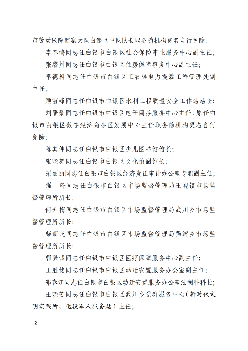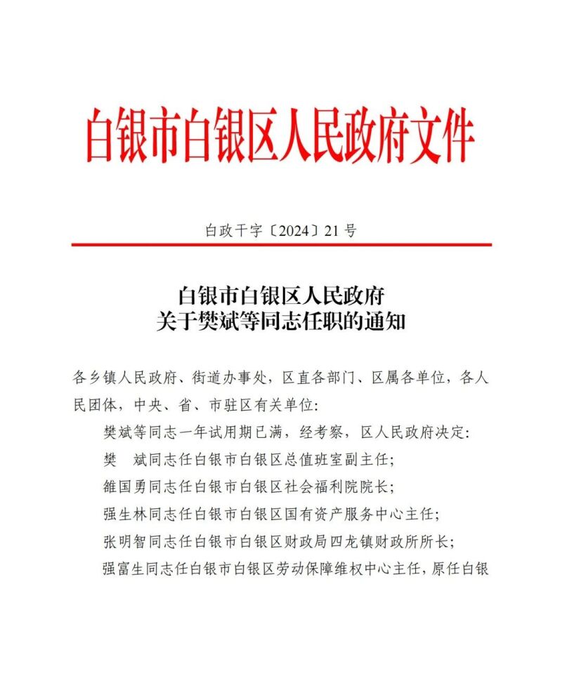 白银市白银区人民政府关于樊斌等同志任职的通知