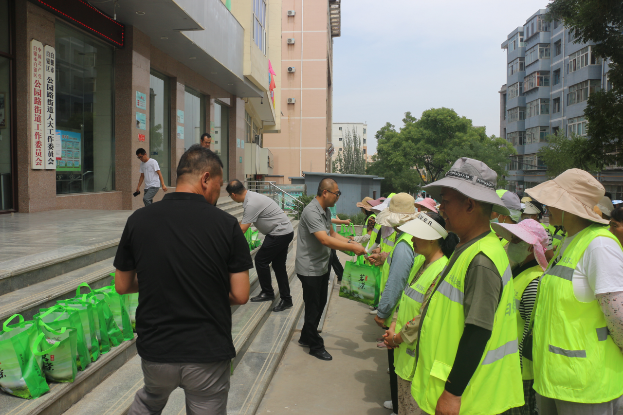| 【三抓三促】炎炎夏日送清凉 关怀慰问暖人心——白银区公园路街道为环卫工人发放防暑降温用品 | |