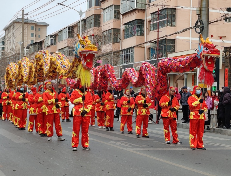 “咚咚咚锵,咚咚咚锵……”社火表演在锣鼓喧天的鼓点声中拉开了序幕,舞动狮头、旋转狮尾,在有节奏的击打声中跳跃、腾翻、爬梯、叠罗汉,使人沉浸在一种欢腾欣舞、开怀逗趣的氛围中。精彩的舞龙表演令人目不暇接,舞出了年味更舞出了新春的喜悦,现场群众掌声不断,每个参与者身上都散发出自信昂扬、奋发进取的精神风貌,传递着对美好生活的向往。