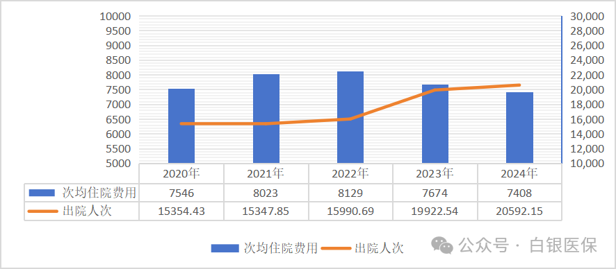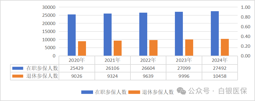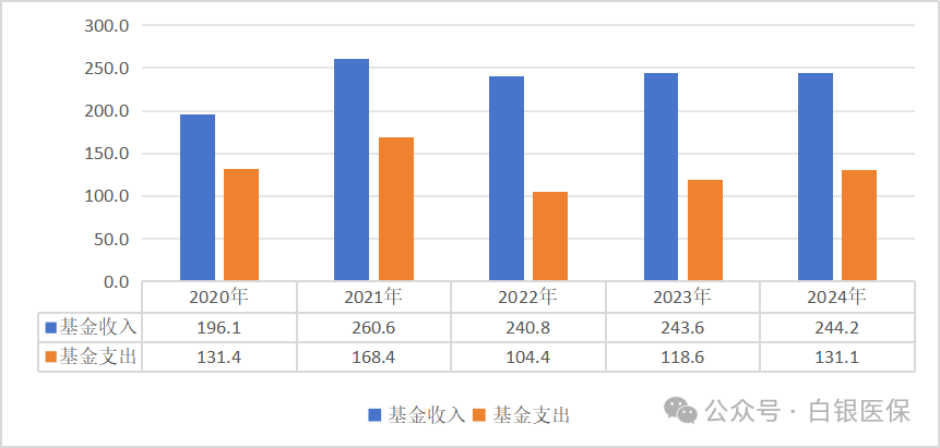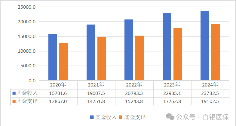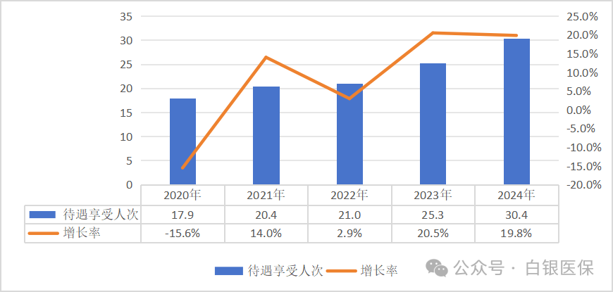 2024年,国家医保局坚持以习近平新时代中国特色社会主义思想为指导,深入学习贯彻党的二十大和二十届二中、三中全会精神,坚决贯彻落实党中央、国务院决策部署,完整、准确、全面贯彻新发展理念,加快构建新发展格局,持续完善中国特色医疗保障制度,推动群众待遇巩固提升,基金运行安全稳健,管理服务提质增效。 01 基本医疗保险运行安全稳健 截至2024年底,全国基本医疗保险(以下简称基本医保)参保132662.08万人,参保率巩固在95%。2024年全国基本医疗保险(含生育保险)基金总收入34913.37亿元,基金总支出29764.03亿元。统筹基金当期结存4639.17亿元,累计结存38628.52亿元。 (一)职工基本医疗保险 1.参保人数。截至2024年底,职工医保参保37948.34万人,比上年增加853.70万人,增长2.3%。其中在职职工27491.84万人,退休职工10457.50万人。 2020-2024年职工医保参保人员结构 单位:万人 企业、机关事业、灵活就业等其他人员的参保人数分别为24535.36万人、6797.07万人、6615.91万人。职工医保统账结合和单建统筹参保人员分别为35435.02万人、2513.32万人。 2.基金收支。2024年职工医保基金(含生育保险)收入23732.47亿元,比上年增长3.5%;基金(含生育保险)支出19102.54亿元,比上年增长7.6%。2024年职工医保统筹基金(含生育保险)收入17342.45亿元,比上年增长4.6%;统筹基金(含生育保险)支出13222.71亿元,比上年增长13.5%;统筹基金(含生育保险)当期结存4119.75亿元,累计结存30445.50亿元。2024年职工医保个人账户收入6390.01亿元,个人账户支出5879.83亿元,个人账户当期结存510.18亿元,累计结存14471.75亿元。 2020-2024年职工医保基金收支情况 单位:亿元 3.待遇享受。2024年职工参保人员待遇享受人次为53.08亿人次,比上年增长9.9%。其中普通门急诊26.33亿人次,门诊慢特病3.22亿人次,住院0.82亿人次,享受药店购药22.71亿人次。 2020-2024年职工医保享受待遇人次 (不含药店购药) 单位:亿人次 2024年职工医保参保人员次均住院费用为11707元,其中三级、二级、一级及以下医疗机构(含未定级)的次均住院费用分别为13840元、8327元、6105元。次均住院床日8.7天,其中三级、二级、一级及以下医疗机构(含未定级)次均住院床日为7.7天,9.6天,12.6天。 2020-2024年职工医保次均住院费用和出院人次 单位:元、万人次 2024年职工医保参保人员医药总费用20587.46亿元,比上年增长3.6%,其中医疗机构费用18366.57亿元,药店费用2220.89亿元。医疗机构发生费用中,在职职工医疗费用8108.22亿元,退休人员医疗费用10258.35亿元。 职工医保住院费用目录内基金支付比例84.8%,三级、二级、一级及以下医疗机构支付比例分别为83.8%、87.6%、89.9%。 (二)城乡居民基本医疗保险 1.参保人数。截至2024年底,城乡居民基本医疗保险(以下简称居民医保)参保94713.73万人。 2.基金收支。2024年居民医保基金收入11180.91亿元,支出10661.49亿元,当期结存519.42亿元,累计结存8183.02亿元。 2020-2024年居民医保基金收支情况 单位:亿元 3.待遇享受。2024年参加居民医保人员享受待遇30.35亿人次,比上年增长14.9%。其中普通门急诊23.78亿人次,门诊慢特病4.16亿人次,住院2.06亿人次,药店购药0.35亿人次。 2020-2024年居民医保享受待遇人次 (不含药店购药) 单位:亿人次 2024年居民医保次均住院费用7408.08元,其中三级、二级、一级及以下医疗机构(含未定级)的次均住院费用分别为11956元、5852元、2730元。居民医保参保人员次均住院床日8.5天,其中三级、二级、一级及以下医疗机构(含未定级)的次均住院床日分别为7.7天、9.5天、8.2天。 2020-2024年居民医保次均住院费用和出院人次 单位:元、万人次 2024年居民医保参保人员医药费用20312.16亿元,比上年增长3.7%,其中医疗机构费用20098.31亿元,药店购药费用213.84亿元。居民医保住院费用目录内基金支付比例68.6%,三级、二级、一级及以下医疗机构支付比例分别为64.1%、73.3%、81.5%。 02 生育保险制度保障功能持续发挥 2024年全国参加生育保险25299.52万人,比上年增加396.38万人,比上年增长1.6%。2024年享受各项生育保险待遇3690.80万人次,比上年增长30.2%;生育保险基金支出1402.93亿元,比上年增长19.2%。截至2024年底,31个省份和新疆生产建设兵团已将辅助生殖纳入医保。 2020-2024年参加生育保险人数和待遇享受人次 单位:万人、万人次 注:从2023年起生育保险待遇享受人次口径增加产前检查人次数 03 医疗救助托底功能持续增强 2024年全国医疗救助支出792.32亿元,医疗救助基金资助7915.67万人[1]。参加基本医疗保险,实施门诊和住院救助18090.61万人次,全国次均住院救助、门诊救助分别为1254元、92元。2024年中央财政安排医疗救助补助资金297亿元。 2020-2024年医疗救助支出和资助人数 单位:亿元、万人 04 “三医”协同发展和治理成效显著 (一)医保药品目录 《国家基本医疗保险、工伤保险和生育保险药品目录(2024年)》收载西药和中成药共3159种,其中西药1765种,中成药1394种。2024年新纳入药品91种。 2020-2024年版国家医保药品目录收载的西药和中成药 单位:种 自2018年国家医保局成立以来,连续7年开展医保药品目录动态调整,累计835种药品新增进入目录范围。2024年协议期内谈判药品报销2.8亿人次。 (二)医保支付方式改革 截至2024年底,基本实现按病种付费统筹地区、符合条件的医疗机构全覆盖,按病种付费出院人次占比超过90%,按病种付费的基金占全部符合条件住院医保基金支出比