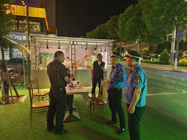 整治商业噪音扰民。整治过程中,执法人员坚持并落实“夜巡”制度,持续加大巡查频次和力度,耐心与相关负责人进行沟通解释,宣讲噪音防治相关规定,要求其严格遵守《外摆经营公告》中规定的经营时间和其他要求。经营期间主动加强店内噪音管控,及时劝导消费者不大声喧哗,做到文明消费;针对发现的问题,督促当事人自行整改,对拒不整改或整改不到位的,依法进行约谈,并下发《责令改正通知书》。截至目前,整治门店噪音6起、啤酒桌、烧烤摊点噪音22起。