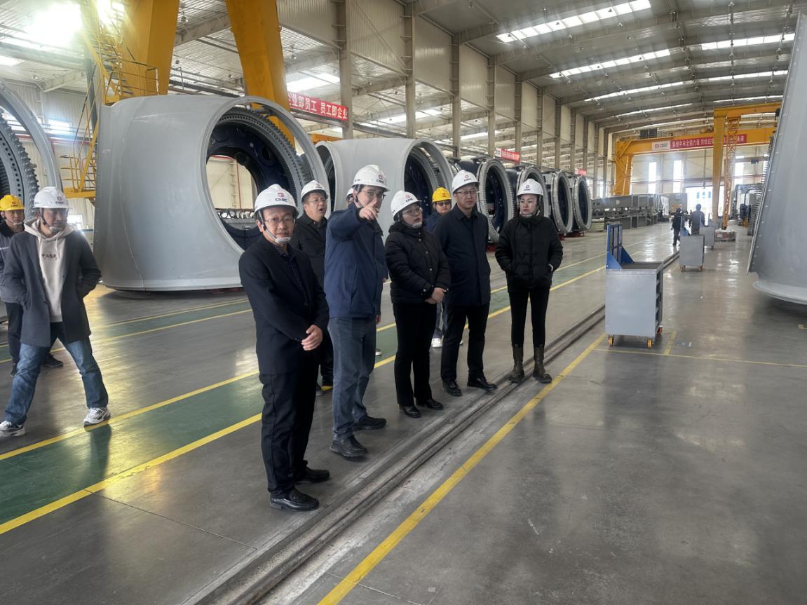 在中车・锦源白银智慧能源装备产业项目现场,实地察看了项目建设进度、生产车间布局及技术创新成果,与企业负责人围绕风电塔筒制造及新能源装备循环产业项目、智慧能源装备产业链延伸、产学研用协同创新等进行深入交流,详细询问项目在政策支持、要素保障等方面的需求,为后续精准招商、靶向服务奠定基础。