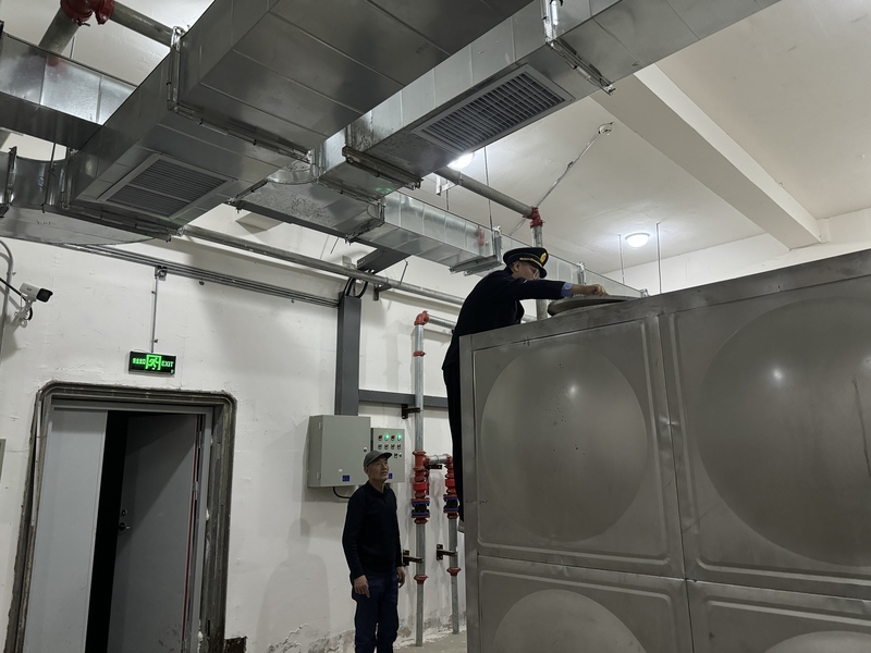 在二次供水单位,执法人员查看了日常维护情况、清洗消毒和水质检测等情况。