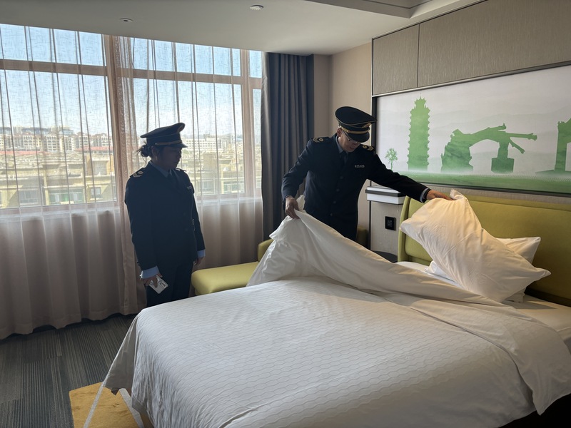 针对酒店、电影院、超市等人员密集重点公共场所,检查组重点查看室内通风、公共区域消毒、用品用具消杀、从业人员健康管理等工作落实情况,仔细核查集中空调运行、卫生消杀记录等内容,要求经营单位严格落实常态化卫生防控措施,优化公共场所卫生环境,保障群众聚集活动卫生安全。