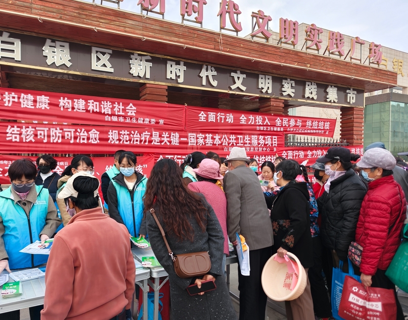 为深入贯彻落实国家、省、市、区关于结核病防治工作的部署要求,积极响应第31个“世界防治结核病日”主题号召,3月24日,白银区疾病预防控制中心以“全面行动 全力投入 全民参与 终结结核”为核心,在辖区全民健身广场开展结核病防治主题宣传活动,推动防治知识走进群众、深入人心。