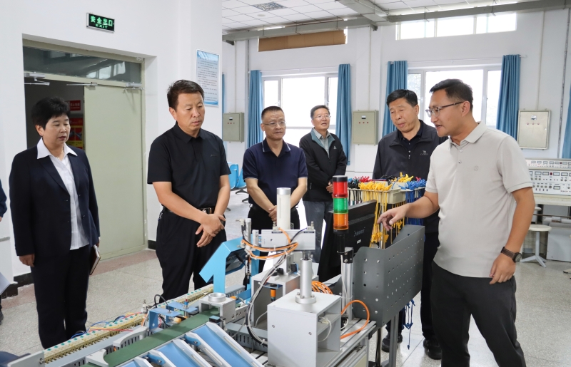 马世斌一行走进学校教学楼、数控实训基地、学生食堂、宿舍,实地了解学校环境、设施设备以及学生技能实训等情况,深入了解学校在办学规模、专业建设、人才培养、招生、校园安全等方面工作。座谈会上,马世斌听取了全区职普融通、职专教育情况汇报,并从“新时代背景下职业教育发展、强化职普融通、对接优质资源”等方面对今后职专发展提出指导性意见建议。马世斌强调,要坚持探索普职合作育人新机制,促进学生的全面发展,构建“技能培训过硬、文化课教育过硬、师资力量过硬”具有我区特色的综合人才培养模式,让学生“人生有底色,专业有底线,发展有底气”。要抓住当前职业教育发展的良好机遇,乘势而上,不断提升办学水平,擦亮职业教育名片,提高学校的知名度和美誉度。要加快推进职普融通,构建现代职教体系、实现人才贯通培养。要以专业建设为抓手,优化专业结构,提升办学质量,培养更多符合市场需求的高素质技能人才。要持续改善办学条件,提升职业学校吸引力,对接优质资源,打造产学研一体化办学模式,强化服务地方经济发展的能力。同时,要守牢安全底线,确保学校各项工作的顺利进行,为学校的可持续发展保驾护航。