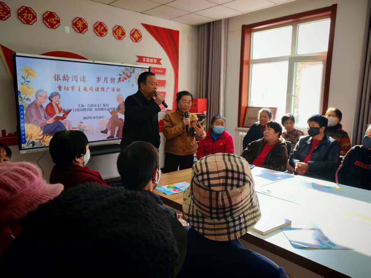 岁岁重阳,今又重阳;秋菊飘香,敬老情长。为弘扬中华民族尊老敬老、爱老助老的传统美德,丰富辖区老年群体的精神文化生活,切实为老年人办实事、解难题,在重阳节来临之际,纺织路街道银馨社区联合共建单位白银市图书馆,精心策划并开展了以“银龄阅读 岁月留声”为核心,融合义诊服务与法治宣传的重阳节主题活动,为辖区老年朋友们送上了一份饱含温情的节日厚礼。