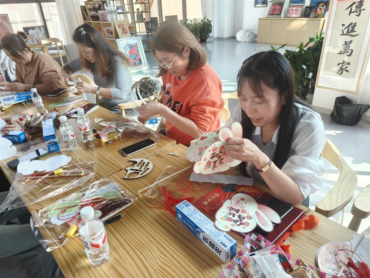 巧手制灯笼,团圆寄深情。手工制灯笼环节,工作人员提前备各类形状灯笼材料包,以及印有月亮、祥云图案的彩纸、流苏等材料。居民们自发围坐成圈,分工协作:有人细致拼接兔子灯骨架,有人认真粘贴月亮图案彩纸,还有人用金粉勾勒花纹、系上飘逸流苏。不一会儿,一个个憨态可掬的兔子灯、点缀着月亮元素的特色灯笼相继成型,灯光透过纸面透出柔和光晕,为社区增添了别样的节日韵味。大家举着亲手制作的灯笼合影,定格下这温馨时刻。