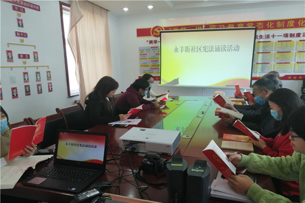 为营造浓厚的法治宣传氛围,提高辖区居民学法、用法意识,形成弘扬宪法精神、维护宪法权威的良好风尚。2020年4月17日,永丰街社区组织社区工作人员在社区会议室集中学习《中华人民共和国宪法》。
