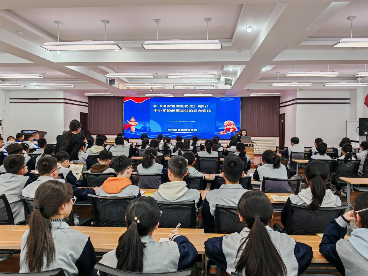 讲座中,法治副校长紧密结合新修订实施的《中华人民共和国治安管理处罚法》相关内容,立足校园实际,用通俗易懂的语言详细解读了校园欺凌的定义、表现形式及严重危害。并强调,校园欺凌行为一旦达到一定程度,便不再是“小事”,可能触犯法律并承担相应行政责任。通过播放小视频,同学们更直观地了解到新修订的《中华人民共和国治安管理处罚法》,看似不经意的推搡、辱骂、孤立他人等行为,都可能构成违法,不仅会受到学校纪律处分,还可能被公安机关依法处罚,留下违法记录,对个人升学、就业等产生长远影响。