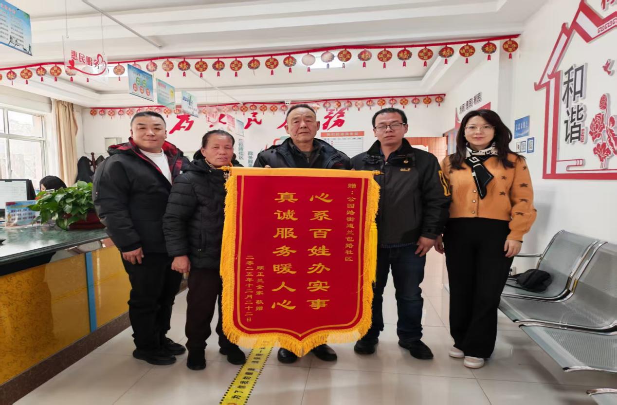近日,兰包路社区办事大厅内暖意融融,辖区居民顾正兰带着一面印着“心系百姓办实事 真情服务暖人心”的鲜红锦旗,专程来到社区,向工作人员表达最诚挚的谢意。