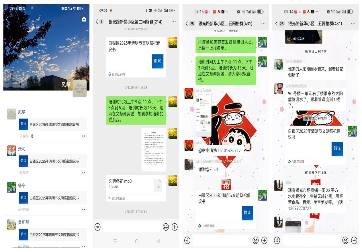 文明祭祀一小步,社区和谐一大步。“我们的节日 清明”系列活动的开展,犹如一场生动的文明实践课,使清明的文化底蕴和精神价值深深扎根在人们心中。此次活动累计转发倡议书40次,文明祭祀音频36次;线下张贴发放倡议书60余份,覆盖居民2000余人,直接触达居民群众。通过一系列宣传举措,广大居民安全祭祀、文明祭祀的意识得到有效提升,越来越多的居民愿意主动担当起文明之风的倡导者和传播者。下一步,银光路社区将进一步推动移风易俗宣传活动,让文明之花在每一个传统节日里绚烂绽放。
