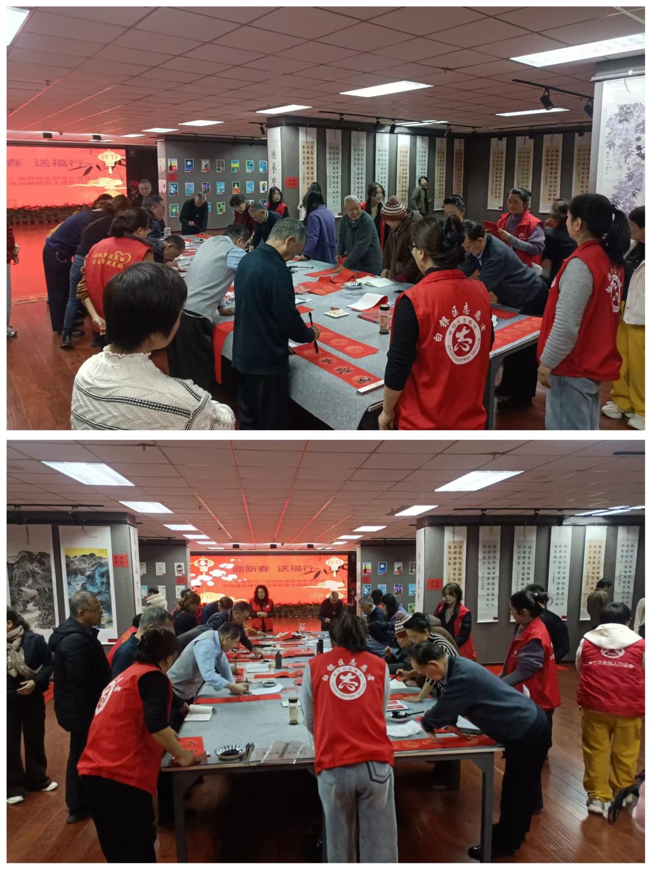 笔墨凝香送祝福,红红春联迎新年。东星园社区新时代文明实践站联合辖区联建共建单位区文旅局邀请书法爱好者、党员志愿者开展“迎新春写春联送福字”活动。活动现场,红纸铺展,墨香四溢,书法爱好者们挥毫泼墨、笔走龙蛇,一副副寓意吉祥的春联,一个个饱含祝福的“福”字跃然纸上,不仅有“骏马奔腾开盛景,春风浩荡展宏图”的新春期许,也有“邻里和睦万事兴,阖家幸福千般顺”的美好祝愿。居民们或驻足观赏,或排队领联,拿到春联的居民脸上洋溢着幸福的笑容,红彤彤的春联为社区增添了浓浓的节日喜庆。