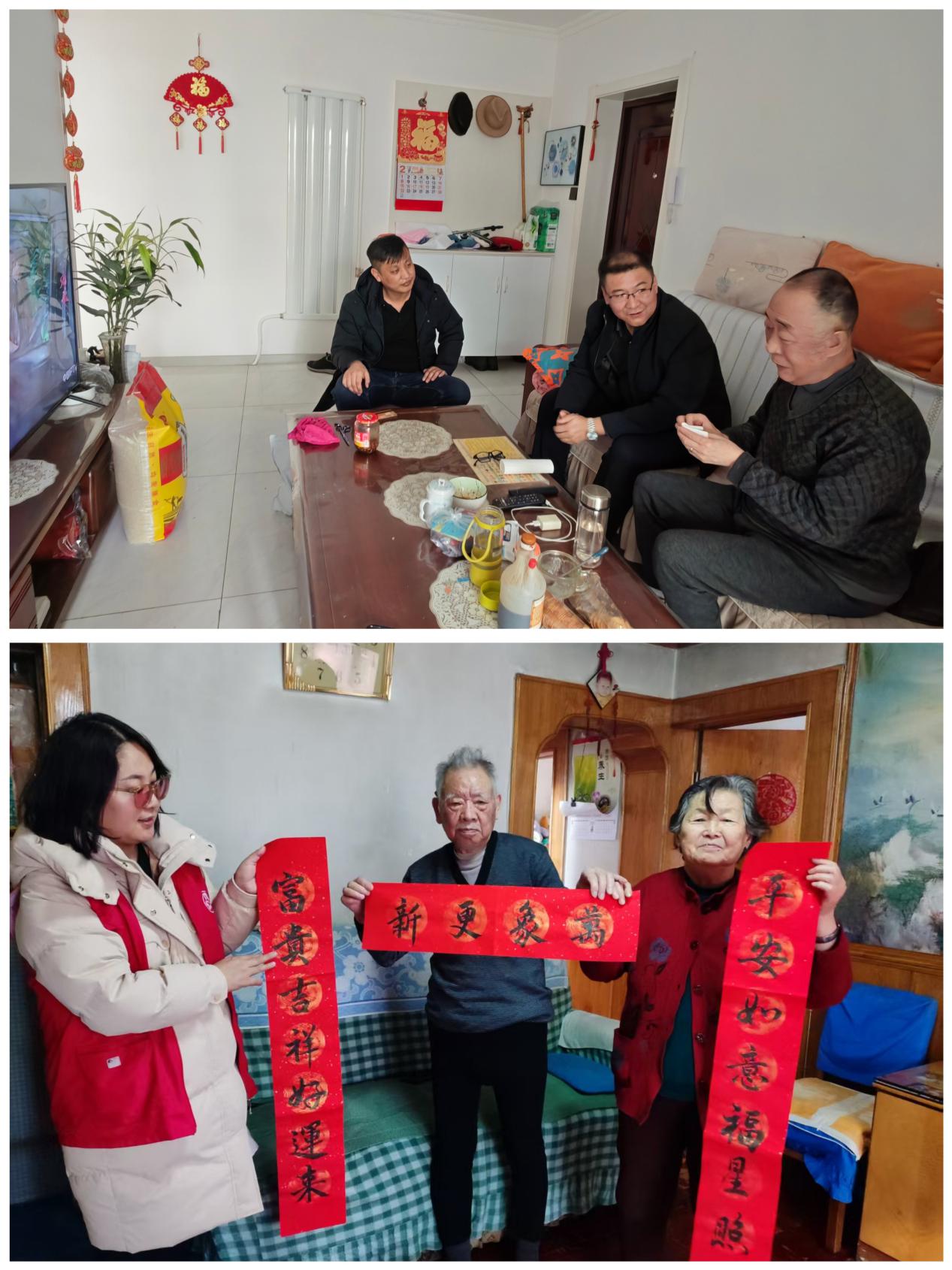 暖心慰问传温情,点滴关怀暖人心。在新春来临之际,包抓领导带领社区志愿者们重点走访了辖区独居老人、老党员、残疾人等困难群体。为他们送上满载关怀的米面油、春联福字等慰问品,与他们促膝长谈,详细询问他们的身体健康状况,日常饮食起居,耐心倾听生活中遇到的困难,叮嘱他们注意冬季防寒保暖和居家安全,同时向他们讲解社区针对困难群体的帮扶政策,告知有需求可随时联系社区网格员。