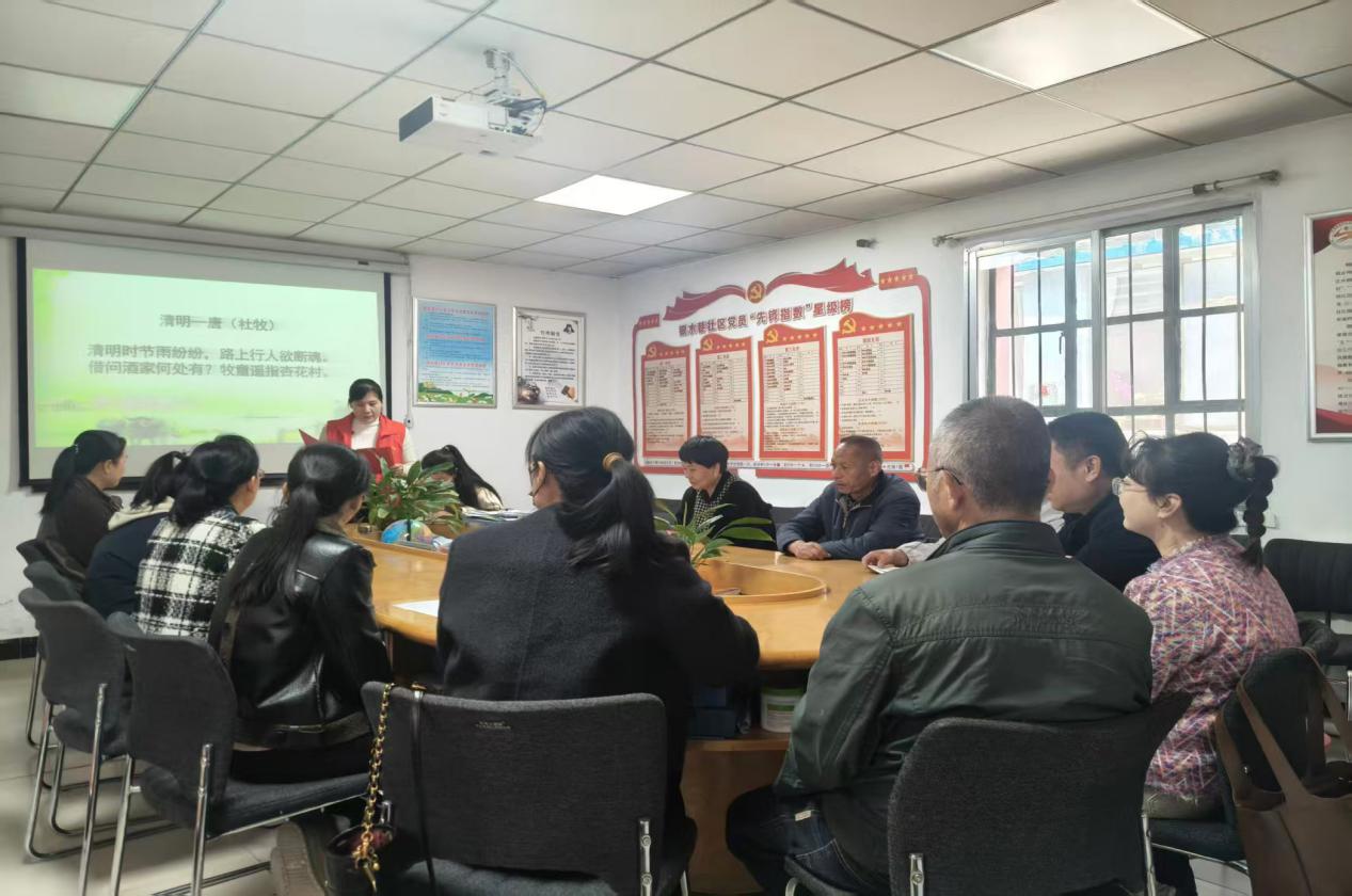 活动中,社区将文化浸润与文明倡导先行,在新时代文明实践站开展了清明经典诵读活动。大家满怀深情地诵读《清明》等清明经典诗词,以及缅怀先烈、弘扬文明新风的原创篇章,朗朗诵读声传递着对先辈的追思之情,也让大家在诗词古韵中深刻领会清明节慎终追远、感恩先辈的文化内涵。诵读现场,社区工作人员在向大家发放移风易俗倡议书,面对面宣讲文明祭扫理念,号召大家自觉摒弃焚烧纸钱、燃放鞭炮等陈规陋习,主动选择鲜花祭扫、线上寄语、家庭追思等绿色低碳、文明节俭的祭奠方式,以环保健康的形式寄托哀思,让文明新风融入清明传统,让移风易俗理念深入人心。