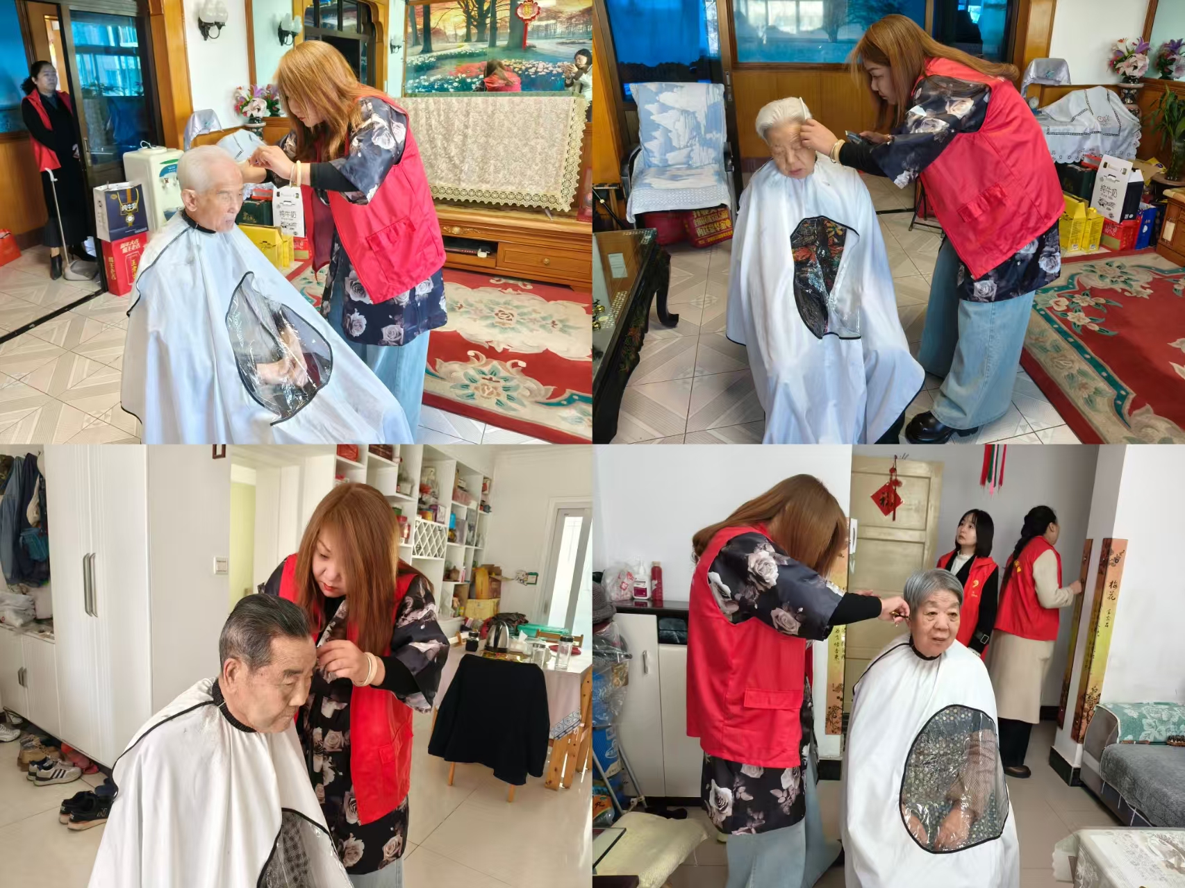 “老爷子,今儿个龙抬头,给您理个发,精神精神!”上午九点,志愿者小夏敲开了独居老人李大爷的家门。俞大爷今年88岁,腿脚不便,平时下楼都费劲,更别说去理发店了。得知社区有上门服务,他早早就在家等着了。铺开围布,拿起剪刀,小夏一边理发一边陪老人唠家常。剪发、修面、清理碎发,每一个动作都格外轻柔。理完发,俞大爷对着镜子照了又照,笑得合不拢嘴:“清爽多了!这龙抬头的日子,你们能来家里给我理发,比啥礼物都贴心!”
