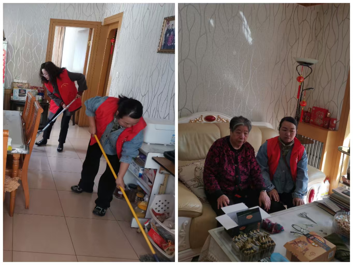 针对行动不便、居家环境整理有困难的老人,社区工作人员主动提供上门清洁服务,帮忙打扫房间、整理家务,并现场检查家中水电、燃气使用安全隐患,普及健康养生与应急避险知识。一句句暖心叮嘱,一次次真诚陪伴,让清冷的小屋暖意融融。