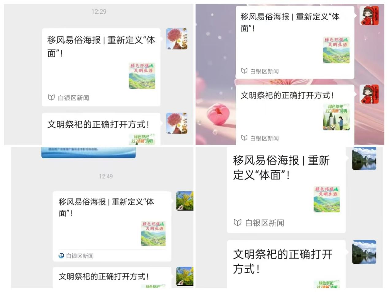 此外,社区充分发挥线上宣传阵地优势,依托社区居民网格微信群等平台,持续推送清明节文明祭祀倡议书、移风易俗科普知识、安全祭祀提示等内容,用图文、短视频等居民喜闻乐见的形式,扩大宣传覆盖面和影响力。
