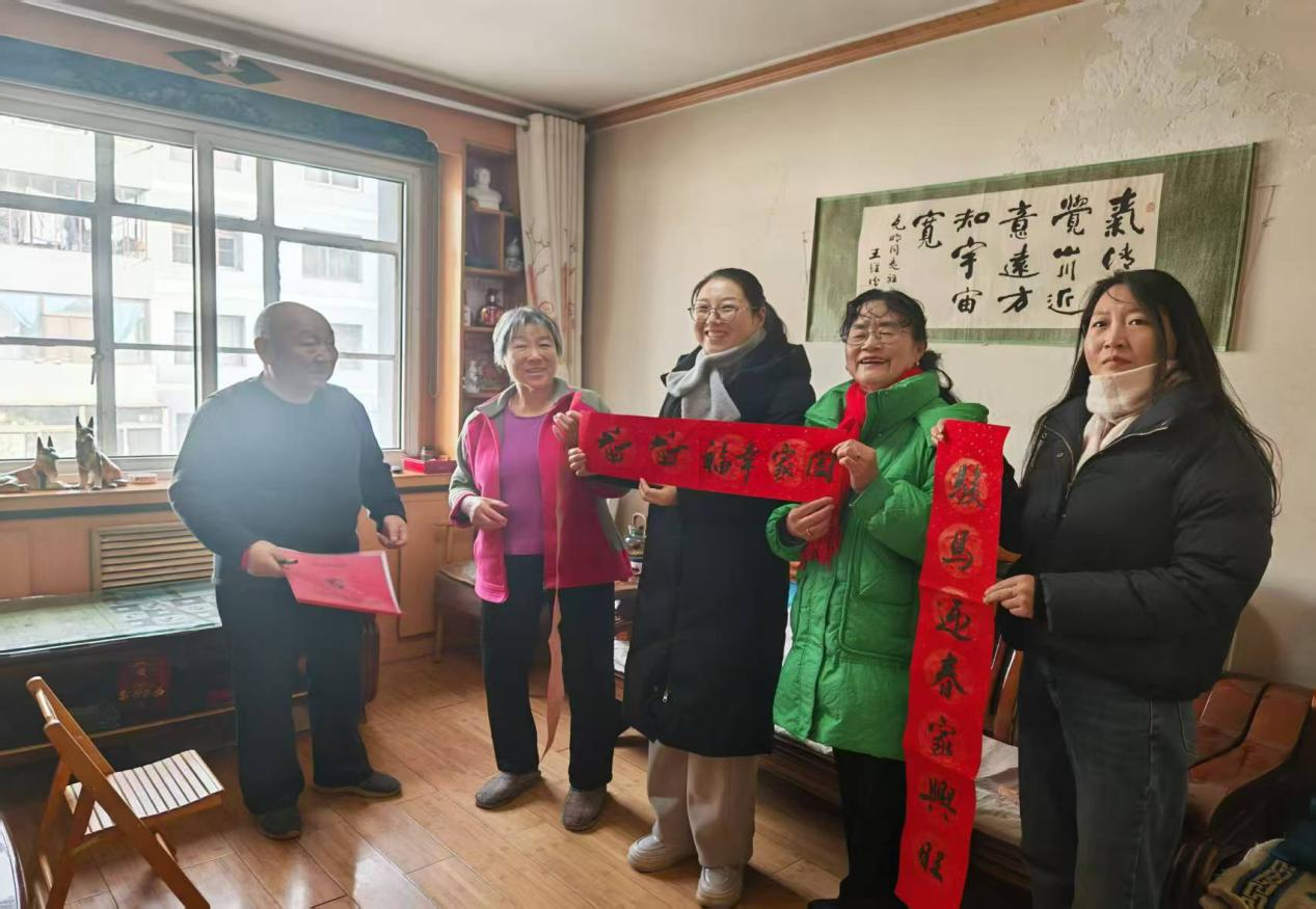 活动尾声,社区工作人员与志愿者带着饱含深情的春联和“福”字,送到了辖区独居老人、党员和居民家中,并向他们送去了节日的祝福和问候。每到一户,工作人员都亲手将春联送到居民手中,与他们亲切交谈,详细询问生活近况,叮嘱注意冬季保暖与出行安全。接过红彤彤的春联与真挚的祝福,居民们脸上洋溢着幸福的笑容,纷纷表示:“社区组织的活动太贴心了,这手写的春联比买的更有年味、更有温度,感受到了浓浓的关怀!”