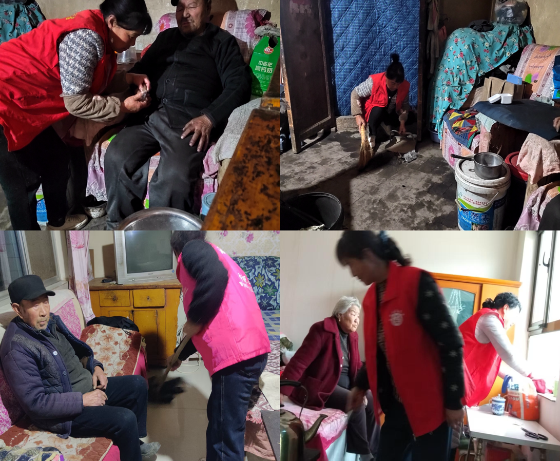 关爱孤寡老人。组织各村妇联执委、巾帼志愿者们到行动不便的老人家中,帮助他们擦桌子、扫地、拖地、整理床铺、修剪指甲等,将屋里屋外打扫地干干净净。打扫过程中,和他们聊聊天,询问他们的身体状况和生活情况,让他们感受到家人般的温暖。