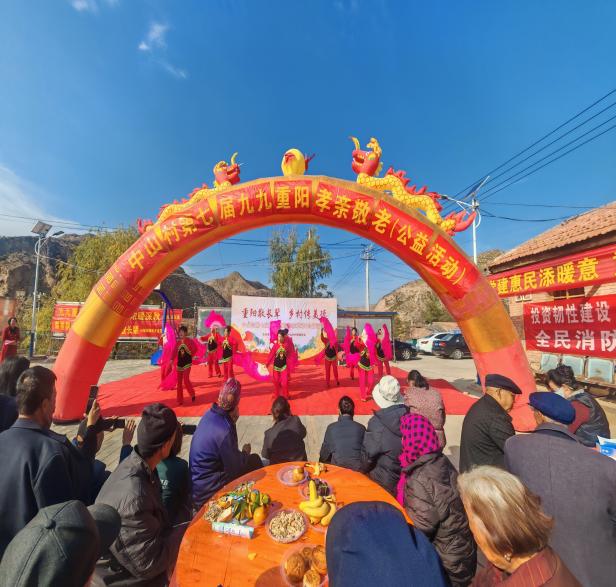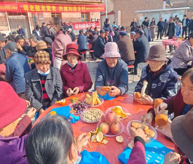 中山村的活动现场热闹非凡,百余位老人欢聚一堂。村里为70岁以上的老人精心准备了节日礼品,一份份心意承载着对长辈的美好祝福。精彩的文艺演出轮番上演,小品类节目引得老人们笑声连连。活动现场还摆放着新鲜的水果、精致的点心,午餐时分,热气腾腾的羊肉端上桌,香气扑鼻,老人们吃得舒心,暖在心头。