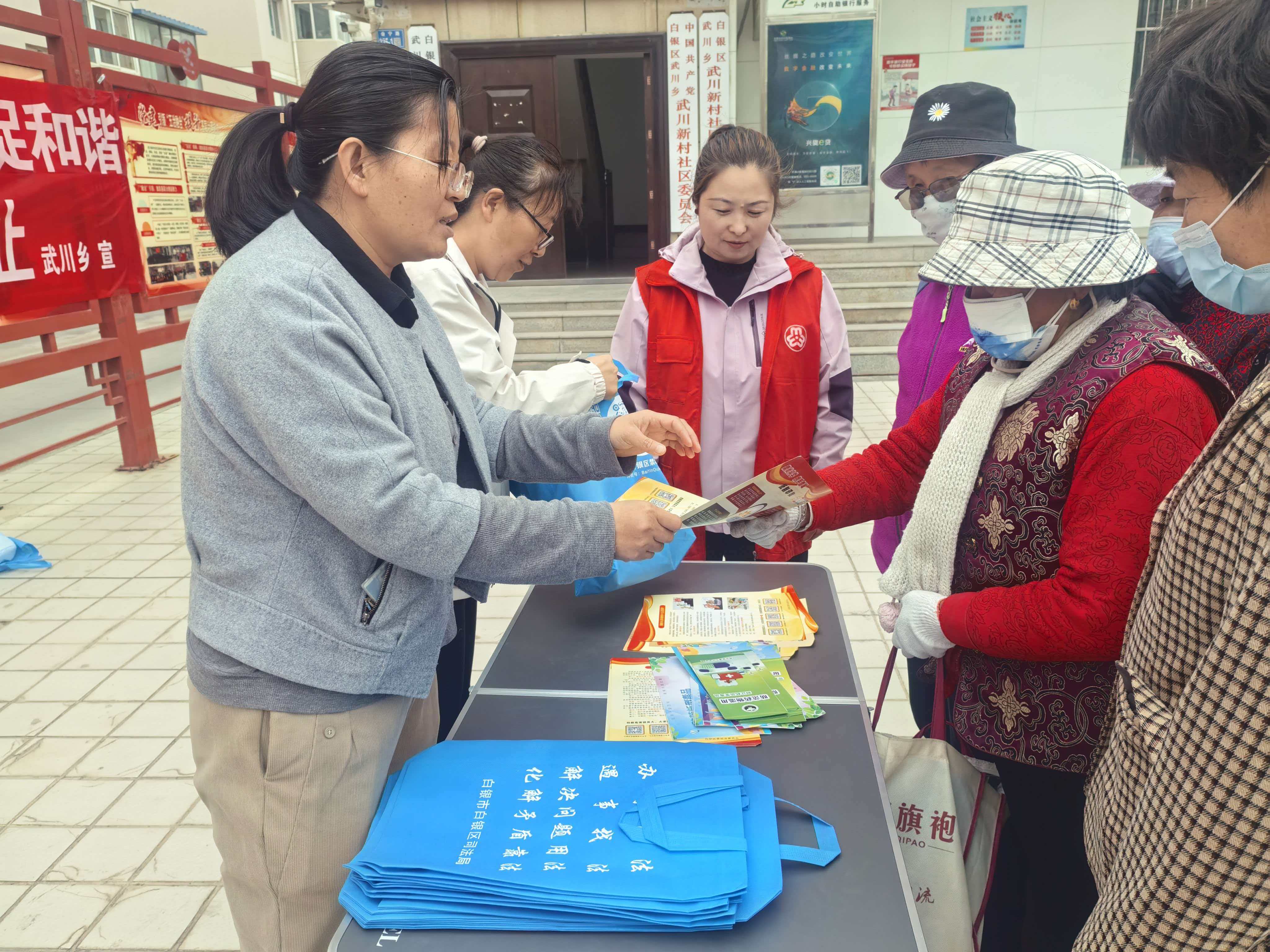 “4月15日”全民国家安全教育日,为牢固树立总体国家安全观,防范化解基层安全风险,守护社会和谐稳定,武川乡平安法治办联合武川司法所、乡妇联等部门,深入新村社区开展反邪教主题宣传活动,把国家安全常识和防邪拒邪知识送到群众身边,切实筑牢基层安全防护网。