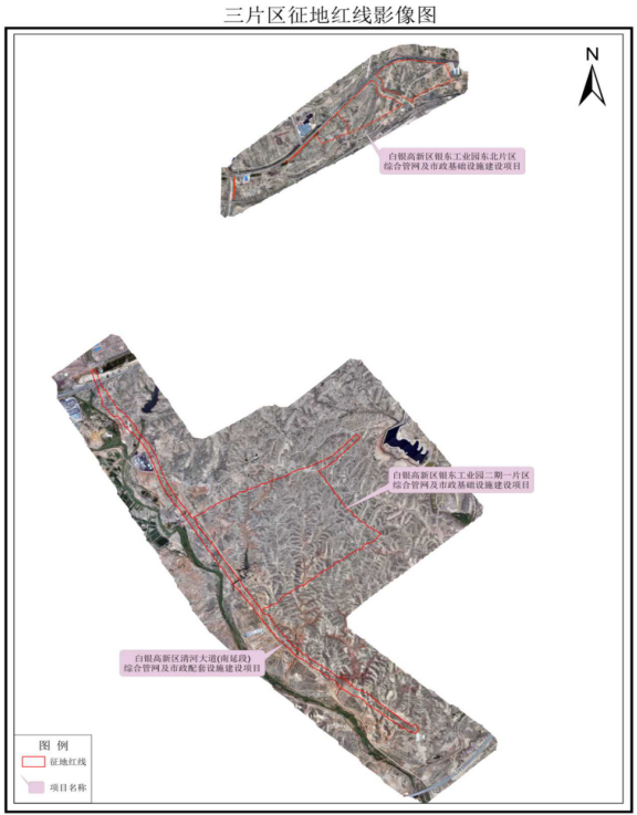 3.白银高新区银东工业园东北片区综合管网及市政基础设施建设项目范围:东至109国道,西至荒山,南至红会铁路线,北至109国道(详情见三片区征地红线影像图)。