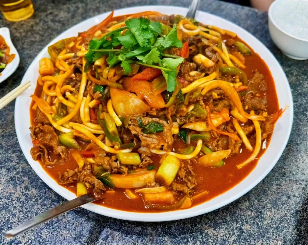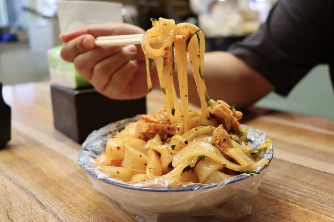 泼上鲜红的油泼辣子、淋上醇厚香醋