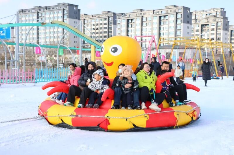 骑雪地摩托、乘坐冰雪黄鸭小火车、滑雪圈……在白银福门印象冰雪乐园,各类趣味十足的冰雪项目让现场充满欢声笑语。大家在宽阔的冰面上自由滑行,坐上五彩缤纷的雪圈,在雪道上肆意驰骋,尽享速度与欢乐。大人们也重拾童年时光,兴致勃勃地加入孩子们的游戏,清脆的笑声、欢快的呼喊声回荡在整个雪场,暖意融融。
