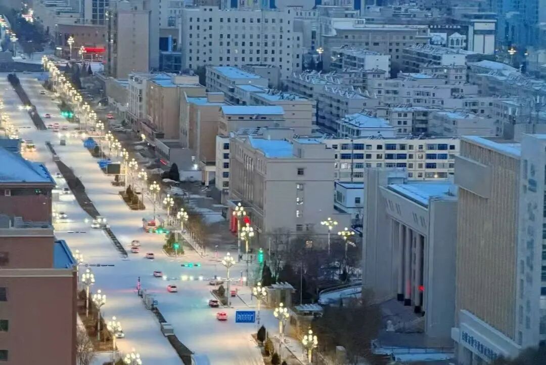 金鱼公园里,晨练的人踏雪而行,脚下发出咯吱轻响。草坪上的雪还未被人迹扰乱,像铺开一袭素净的薄绒毯。呵出的白气与早点摊上升起的炊烟交融,孩童在雪地里追逐笑闹,留下深深浅浅的脚印。霜雪虽覆万物,却遮不住这座小城渐渐苏醒的生机。