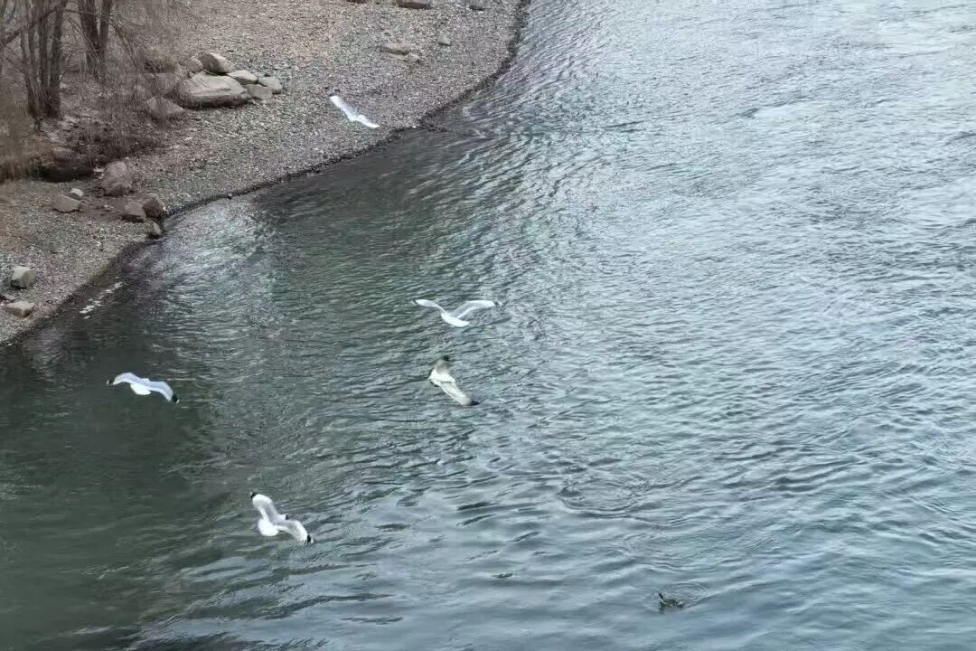 START OF SPRING 河滩上,迎春花开了。 嫩黄的花苞挤挤挨挨地蹲在枝条上,有的半开,有的还紧抿着,像是怕惊扰了这早春的安静。长长的花枝垂下来,拂过岸边的卵石,远远看去,黄澄澄的一片,映着碧清的河水,格外鲜亮。偶尔有风吹过,花枝轻摇,那些细碎的花瓣便落在水面上,顺着黄河的波纹,慢慢地向东漂去。