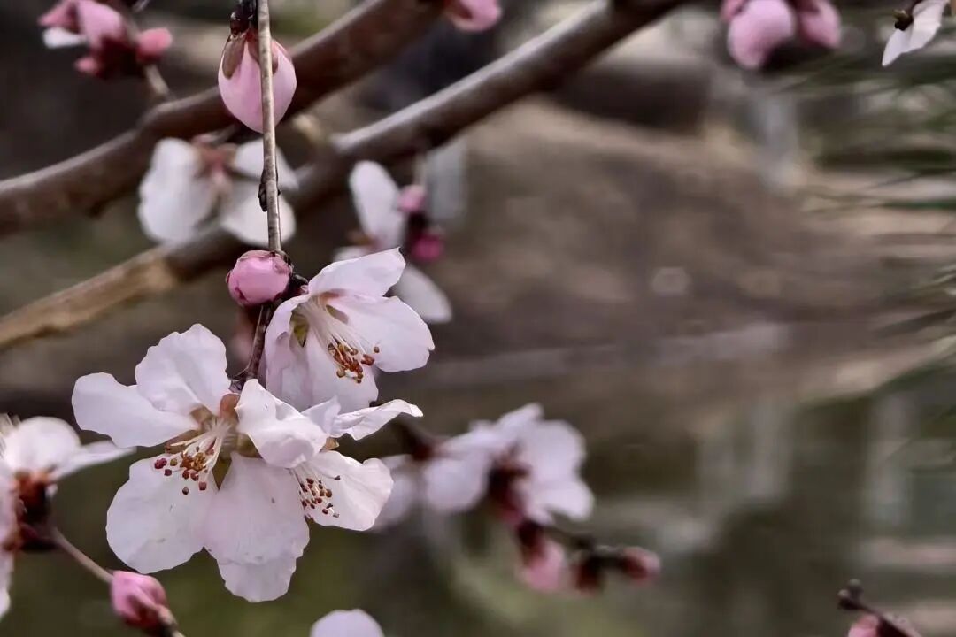 START OF SPRING 几株山桃立在河湾处,粉白的花苞刚刚绽开,疏疏落落的,不像春日那般热闹,倒有几分清冷的气质。花瓣薄得透光,迎着太阳看,能望见细细的脉络,像是印着水雾的痕迹。偶尔有花瓣飘落,在空中打了几个旋,最后也落到河面上,随着那一江春水,不知要流到哪里去。 有人从河滩上走过,惊起一只栖息的水鸟,扑棱棱地飞向对岸。那人也不急,站在原地望了一会儿,又低头继续捡拾石头——他捡到一块青灰色的,上面有白色的纹路,像是河水的印记。 START OF SPRING 河边的芦苇还枯着,但根部已经泛出浅浅的青。再过些日子,新芦芽就会从去年的枯叶间钻出来,到那时,黄河岸边的春意就真正浓了。 "春水初生,春林初盛",说的便是这样的三月天。河水暖了,风软了,花开了,人心也跟着温润起来。站在黄河岸边,看那一江春水向东流去,仿佛所有的烦扰也都随水流走了,只剩下这融融的春光,静静地铺满天地之间。