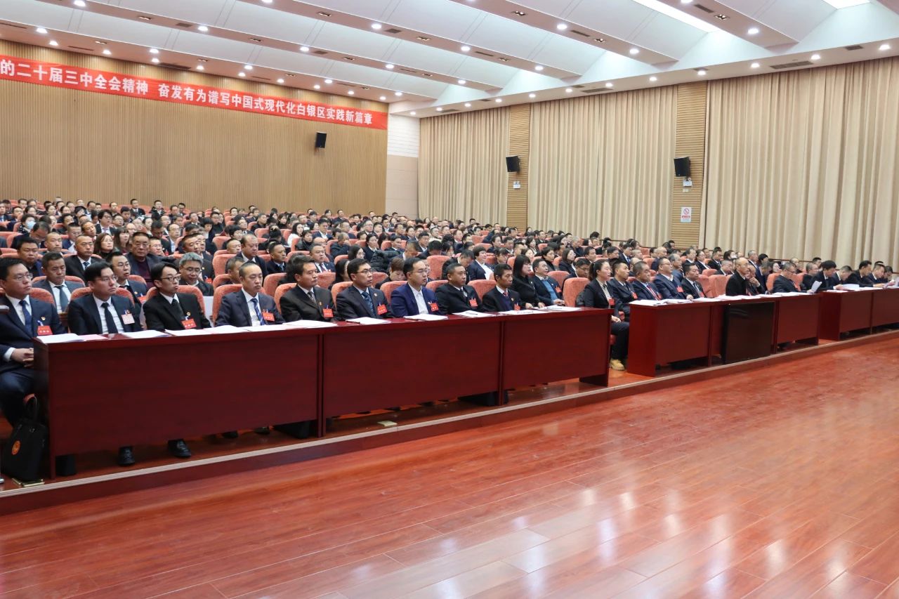 国徽高悬,红旗鲜艳,白银区会务中心内气氛庄重而热烈。主席台对面高悬的“深入学习贯彻党的二十届三中全会精神,奋发有为谱写中国式现代化白银区实践新篇章!”的巨幅标语,令人精神振奋、信心倍增。