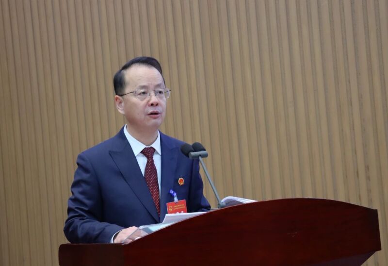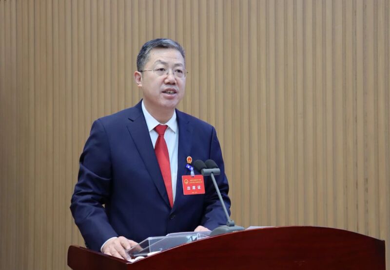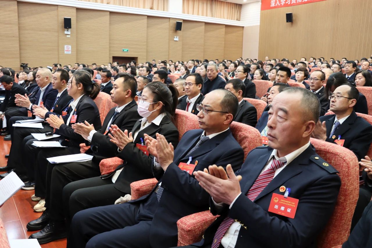 在全场热烈掌声中,区委副书记、代区长韩继国代表区人民政府向大会作政府工作报告。报告分2024年工作回顾、2025年主要目标和重点工作、全面加强政府自身建设三个部分。