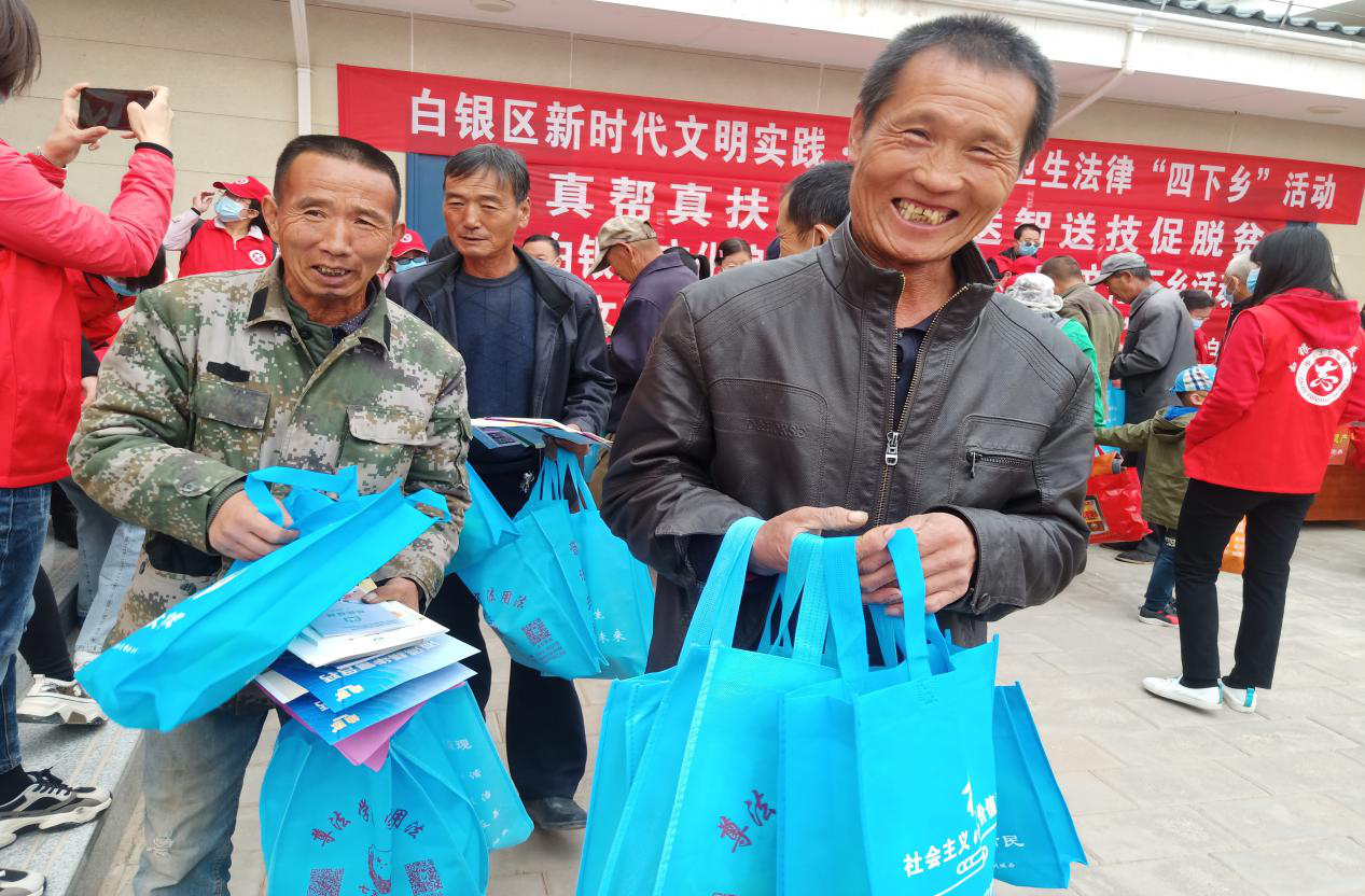 一堂堂生动有趣的科技培训、一包包健康养生的中药食材、一幅幅寓意深刻的剪纸作品、一本本通俗易懂的普法手册、一张张热情洋溢的欢心笑颜……群众切身体会到了服务时刻在身边,温暖永远在心间。白银区“新时代文明实践·‘四下乡’”活动有效结合“送+种”服务,真正实现“常下乡、常在乡、常惠乡”,进一步促进全区干部群众万众一心,助力脱贫攻坚,真正实现全面小康。