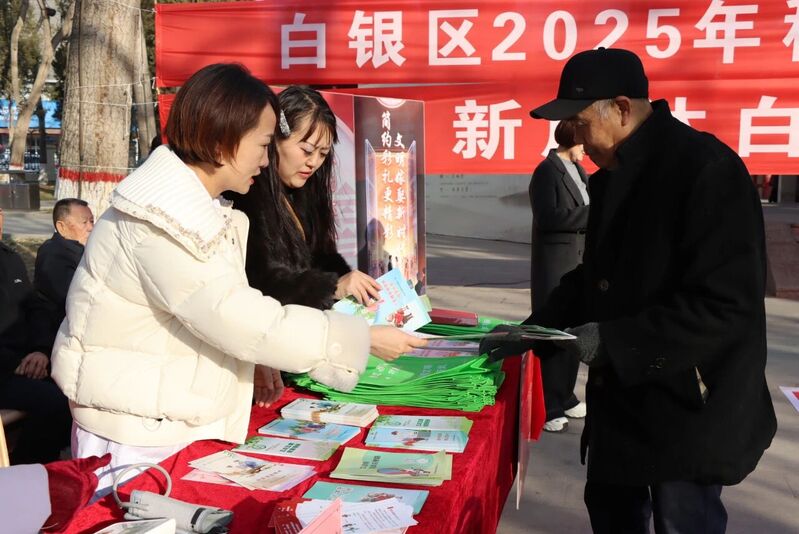 张莉(白银区委宣传部副部长):我们希望通过这种群众喜闻乐见的活动形式,让文明新风从“纸上”走到群众“心里”。此次集中宣传活动,是白银区深入推进移风易俗工作的生动缩影。为构建全方位、立体化的宣传矩阵,白银区各乡镇街道也结合实际,通过悬挂横幅、入户走访、举办“宣传教育公益便民集市”等多种形式,确保移风易俗的文明理念在辖区内落地生根。
