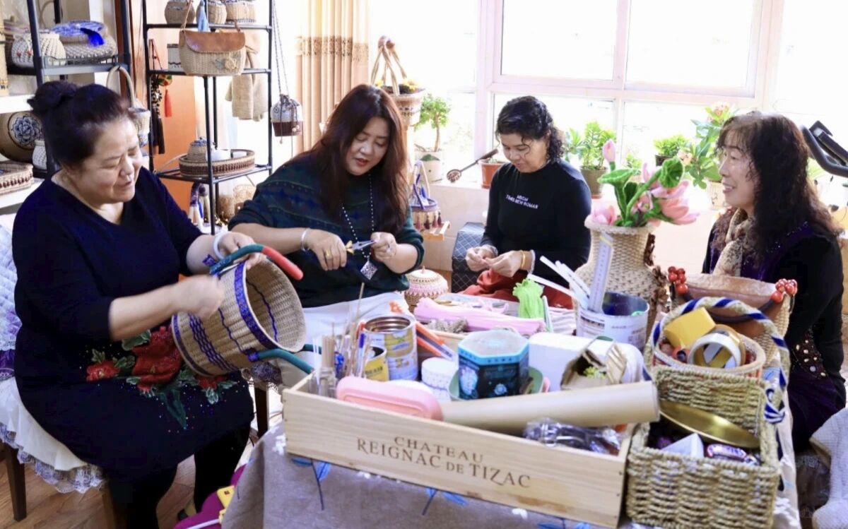 “最开始编的小筐子,歪歪扭扭的,自己都看不上眼。”李艳玲指着客厅角落一个略显粗糙的收纳筐,那是她的第一件作品,“但我没放弃,想着既然喜欢,就一定要做好。”为了精进技艺,她常常骑着电动车跑几十里路,去青城古镇拜访会传统编织的老人,虚心请教编织诀窍;在网上看到新颖的麻编样式,就截图保存,反复研究针法的变化。渐渐地,她的手艺越来越精湛,从简单的收纳筐、手提包,到复杂的麻编挂画、复古花瓶,一根根麻绳在她手中仿佛被施了魔法,变成了兼具实用性与观赏性的作品。