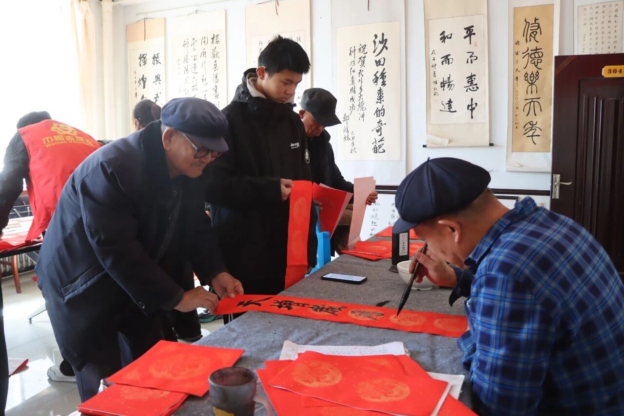 热闹的“文明舞台”之外,一旁的“文明集市”同样暖意融融、人气爆棚。将便民服务、文化体验与政策宣传精准送到群众“家门口”。“百联千福进万家”活动区内,书法爱好者凝神挥毫、笔走龙蛇,一幅幅寓意吉祥的春联墨迹未干,便被群众争相领取,墨香阵阵间,传递着浓浓的年味与温情。志愿者们还专门走访孤寡老人、留守家庭、文明家庭,上门送春联、送祝福,用贴心服务为特殊群体送去新春关怀,让温暖直达人心。