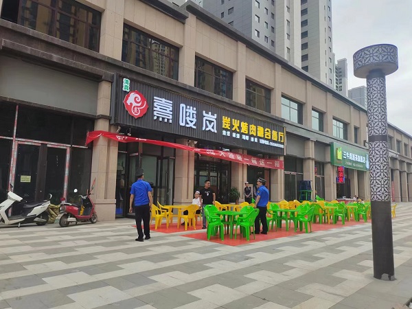 管理求效。执法人员机动采用“巡查+定点值守”的工作方式,紧盯薄弱环节精准发力,狠抓“临时便民摊点”秩序管理工作,将“柔性执法”贯穿管理全过程。针对出店经营啤酒卓,要求经营户将桌椅统一摆放整齐,防污垫铺设到位,同时不得占用盲道和机动车道;针对用气摊点,要求经营户切实提高安全意识、严格用气设备及操作规范、配备灭火器、定期检查燃气胶管接口卡扣、不在燃气钢瓶开关处放置胶袋等易燃杂物;针对易产生油烟的餐饮服务经营户,要求其开启油烟净化设备,并确保正常运行;针对流动经营户,引导至临时便民摊点规范有序经营;针对早餐经营点,要求严格经营时间。