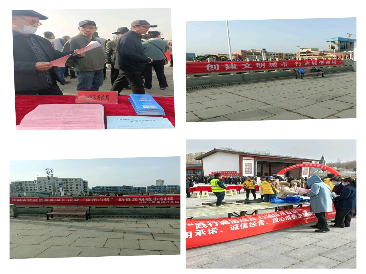 3月15日,区发改局以"3·15"国际消费者权益日为契机,在白银区全民健身广场开展诚信体系建设宣传活动。