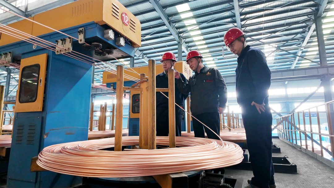 走进西北铜的生产车间,机器轰鸣与智能设备的运转声交织在一起,一派热火朝天的生产景象。工人们身着统一工装,娴熟地操控着各类生产设备,精神专注;中控室的大屏监控着每一道生产工序的参数,屏幕上实时跳动着炉温、冷却强度、引速等关键数据;行车平稳穿梭,将成品铜材精准转运、整齐码放……